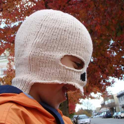 I whipped up a special Hallowe’en balaclava for Hana to wear now that the weather’s cooler. I stumbled across the instructions for this on an unlikely site called Instructables. There are all sorts of great ideas on that site for the DIY kind of person.