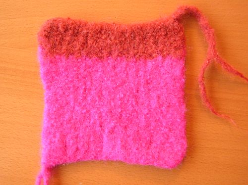 The knitting for the felted clog is coming along quickly. I’m happy with my colour selection although I realised that I goofed with the amounts. The sole (orange) takes twice as much yarn as the upper (pink).
