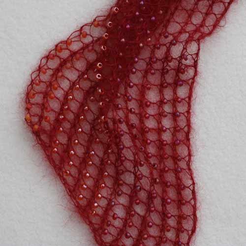 You should be able to get two scarves out of one ball of kid mohair. I’m using Adriafil’s Kid Mohair in the top photo and the other photos feature elann.com’s Super Kydd. Elann’s Silken Kydd is lovely as is Rowan’s Kid Silk Haze.