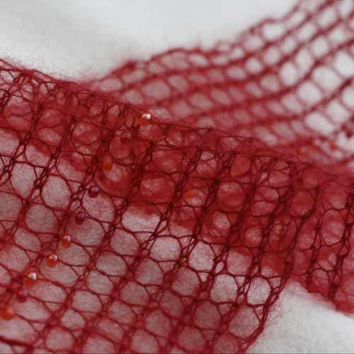 Embedded with beads, this lacey scarf is an elegant addition to any wardrobe. Wrap it around your neck a couple of times and tie it at your throat for an opulent ascot or wrap it once around your neck and fling it over both shoulders. The weight of the beads holds the feather-light kid mohair in place when you wear it.