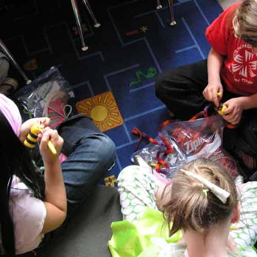 The little kidlets in Hana’s class are really enjoying the spool knitting. They have been eager to have a knitting bee of their own to take home, so I took orders. Almost everyone in the class bought one! Another trip to the store and 20 knitting bees (plus yarn) later we have a bunch of kids enthusiastic about knitting. How good does it get?