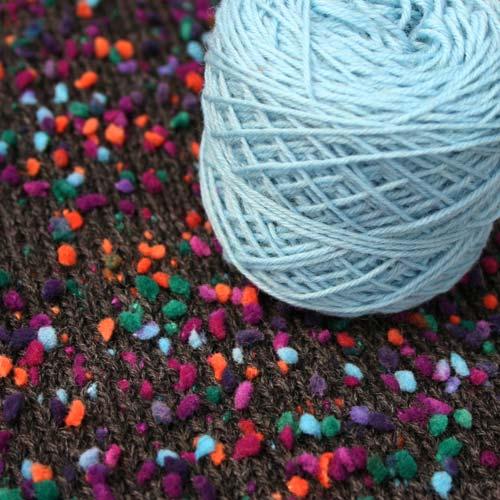 Time to choose a coordinating colour for the edging on the pompom baby sweater. I now know that the baby is a boy and I need your help to choose an appropriate colour.