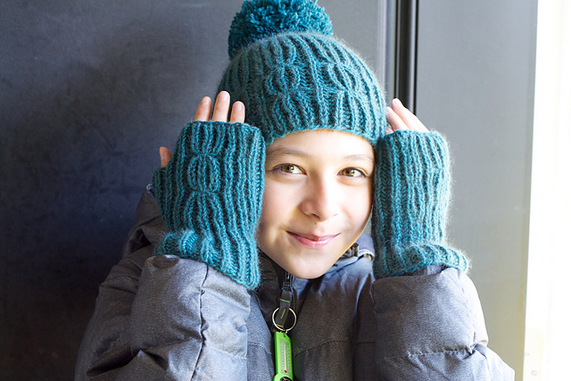 Zealana put out a pattern collection to feature their Rimu possom blend for TNNA last June and I finally have the booklet in hand. I have a hat and fingerless mitt set in the collection. They feature another variation on fisherman’s rib with cables. I love how the double row of crossed cables look like circles.