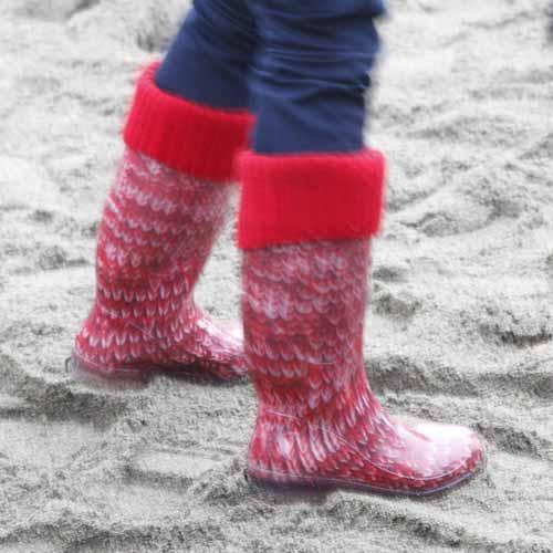 I saw this wonderful pair of rubber boots with a stocking stitch pattern on them and a real knitted cuff. Sorry for the blurry photo–she wouldn’t keep still! I’m now regretting not chasing her down to ask where she bought them. I want a pair!