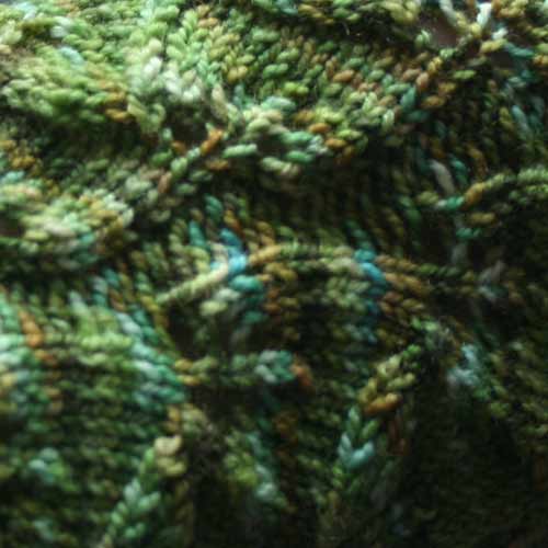 I’ve wanted to knit the Embossed Leaves socks (by Mona Schmidt in the Interweave Knits Winter 2005 issue) ever since I first saw the pattern. I thought I had the perfect yarn for the project. A lovely leafy green hand-painted sock yarn by the late Virginia Van Santen. I have a couple precious skeins of Virginia’s hand-painted and I’ve been saving them for the perfect project.