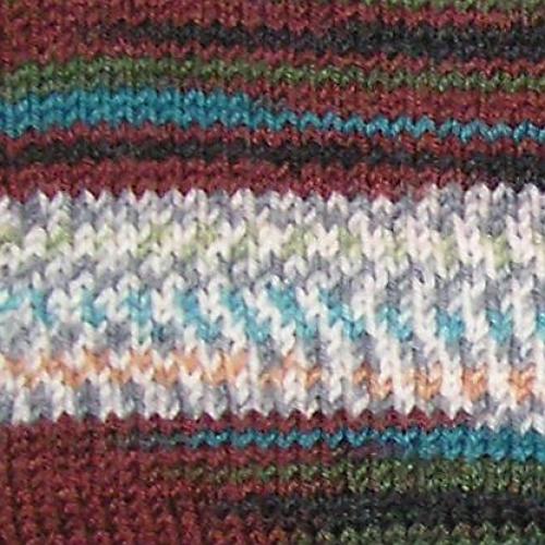 I teach a Strategies for Knitting with Self-Patterning Sock Yarns class. How’s that for a mouthful! One of the points I like to make is that your stitch pattern has to be really simple in order to do both the stitch pattern and the self-patterning yarn justice. The standards such as stocking stitch, garter stitch, reverse stocking stitch, and ribbing all look great. If you choose a really intricate stitch pattern it will probably get lost in the patterned yarn.
