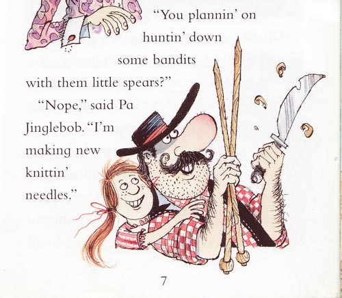 Pa Jinglebob is a sheriff in a frontier town who whittles his own knitting needles.