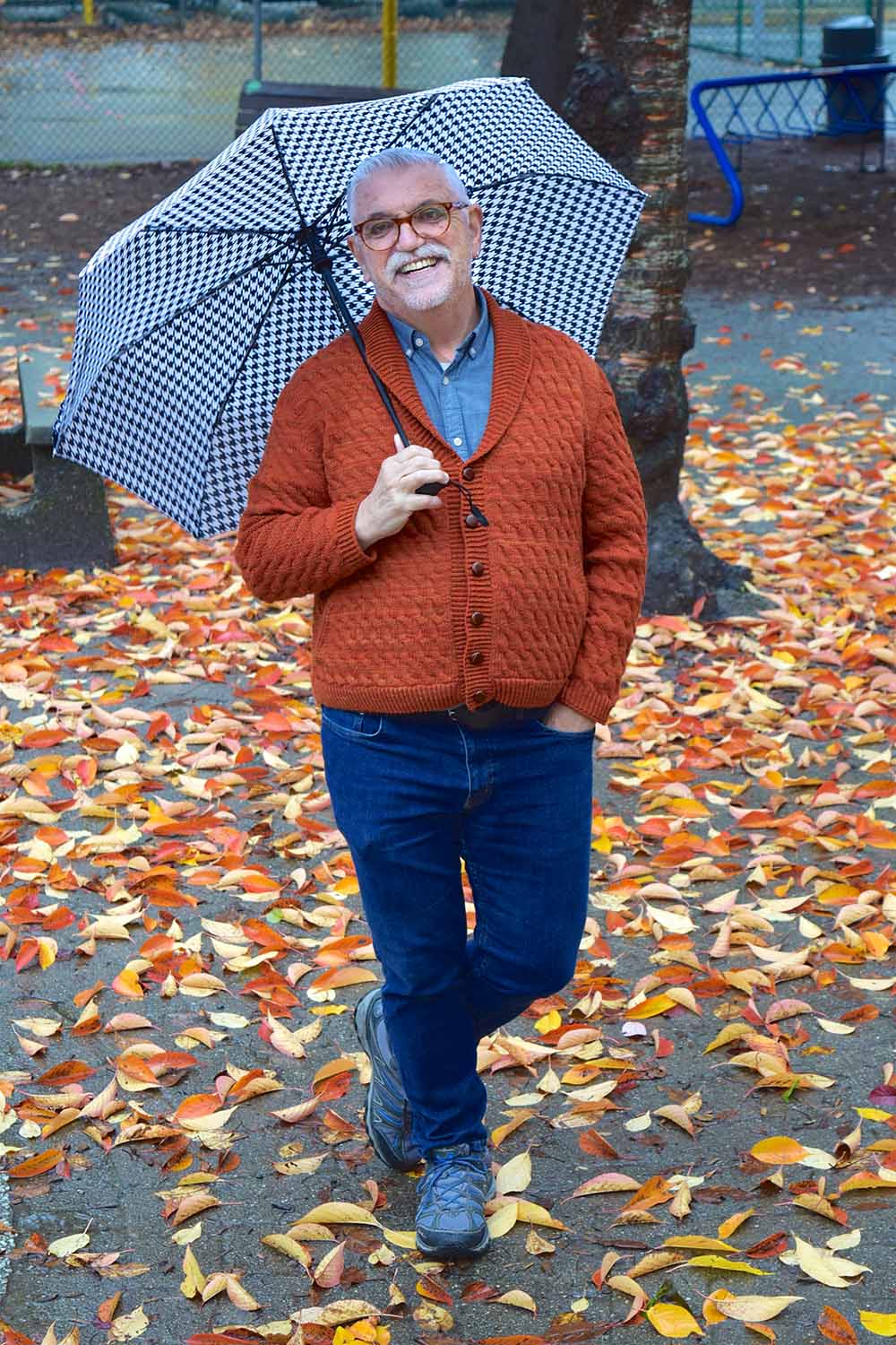 With an allover simple cabled pattern and diamond motif that runs down the centre back and sleeves, the buttoned sweater features deep, integrated pockets; a choice of button placement on the right or left front; and a selection of techniques you’ll be happy to have in your knitter’s toolkit. Set-in sleeves and English-tailored shoulders provide a polished fit. The shawl collar is worked with short rows and changing needle sizes so the collar lays neatly around the back neck.