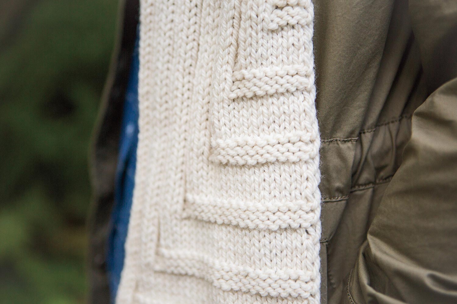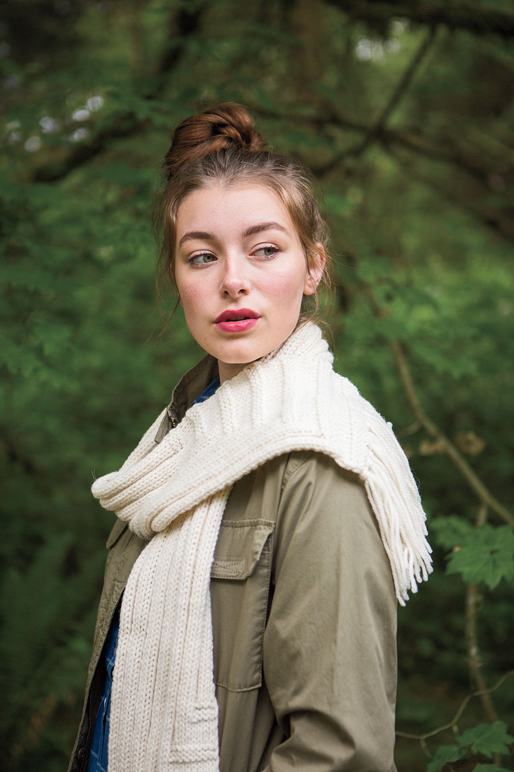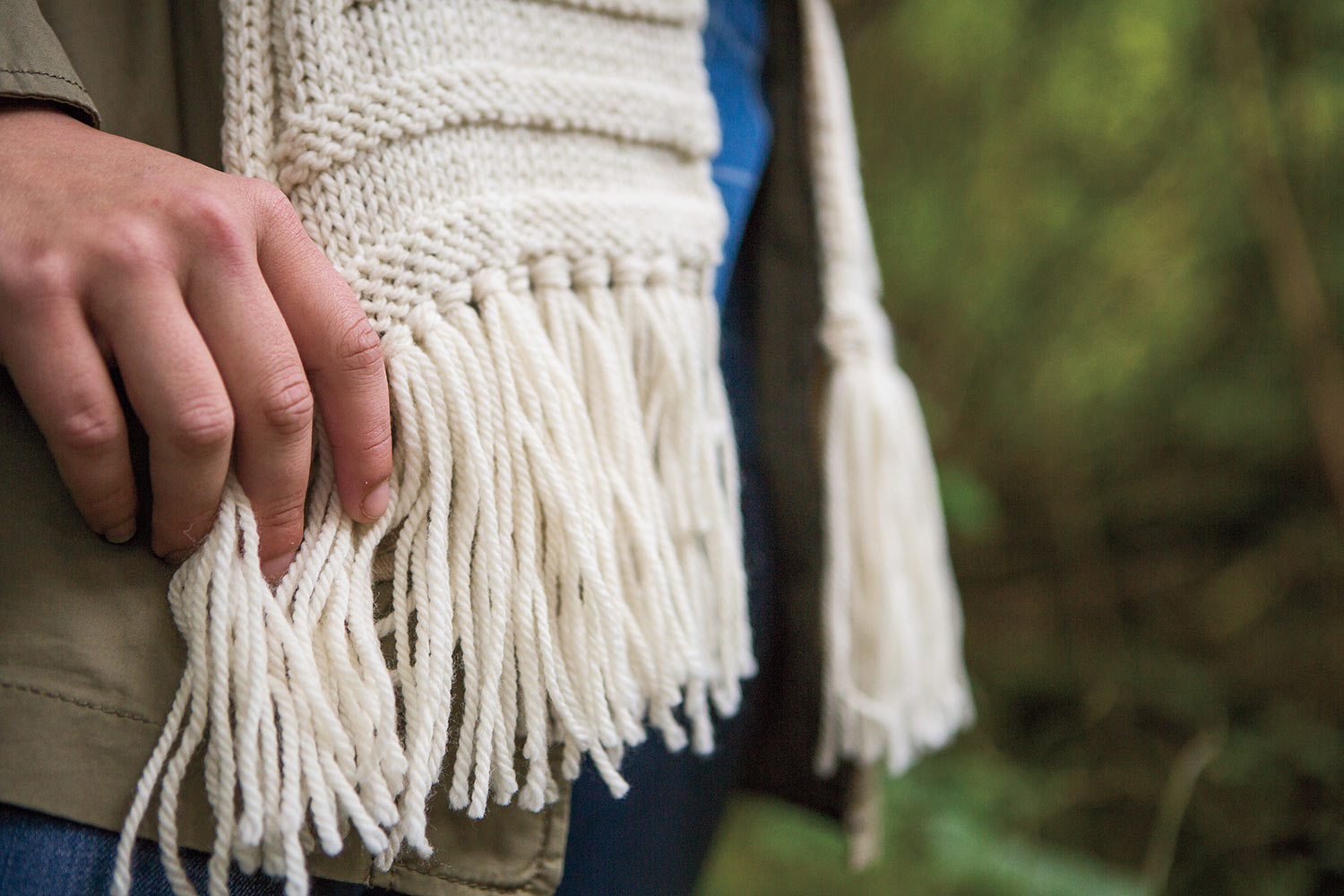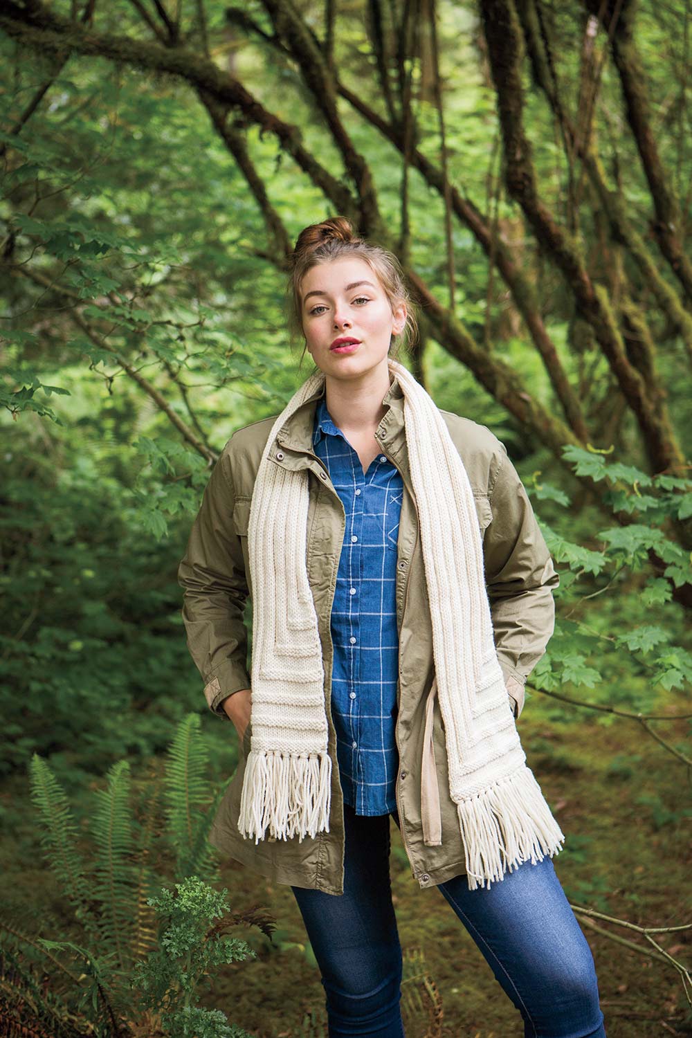 Ribs and welts collide to create striking angles at each end of this fun yet classic scarf. The angles may be hard but the knitting is easy, using only knit and purl stitches, plus strategically placed increases and decreases to maintain an even width. The scarf is fully reversible with an optional fringe.
