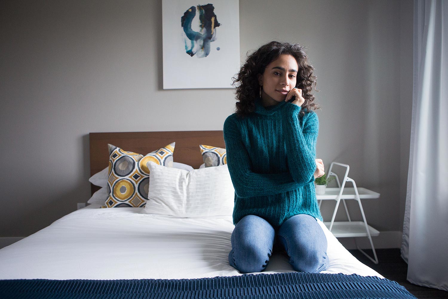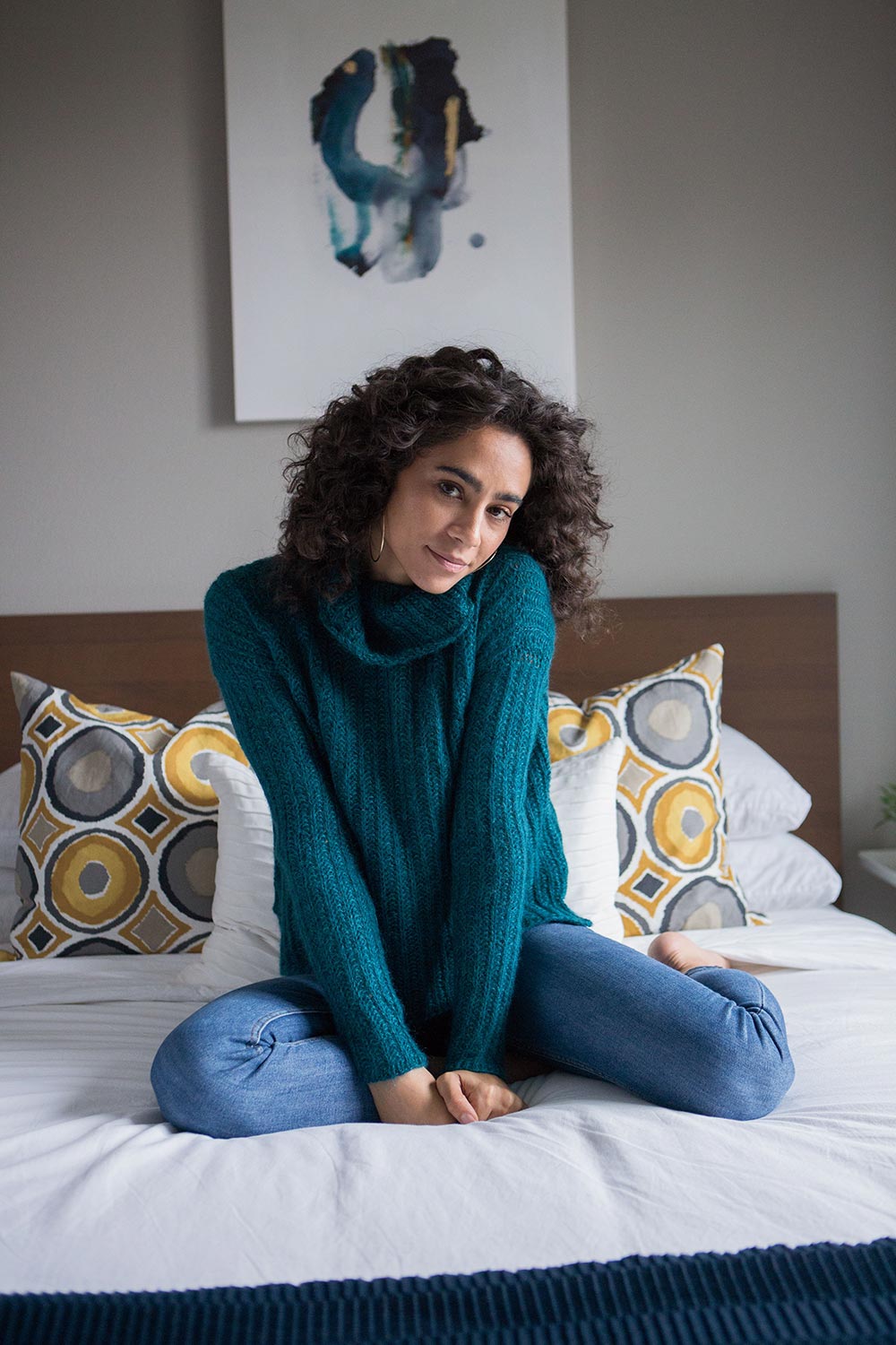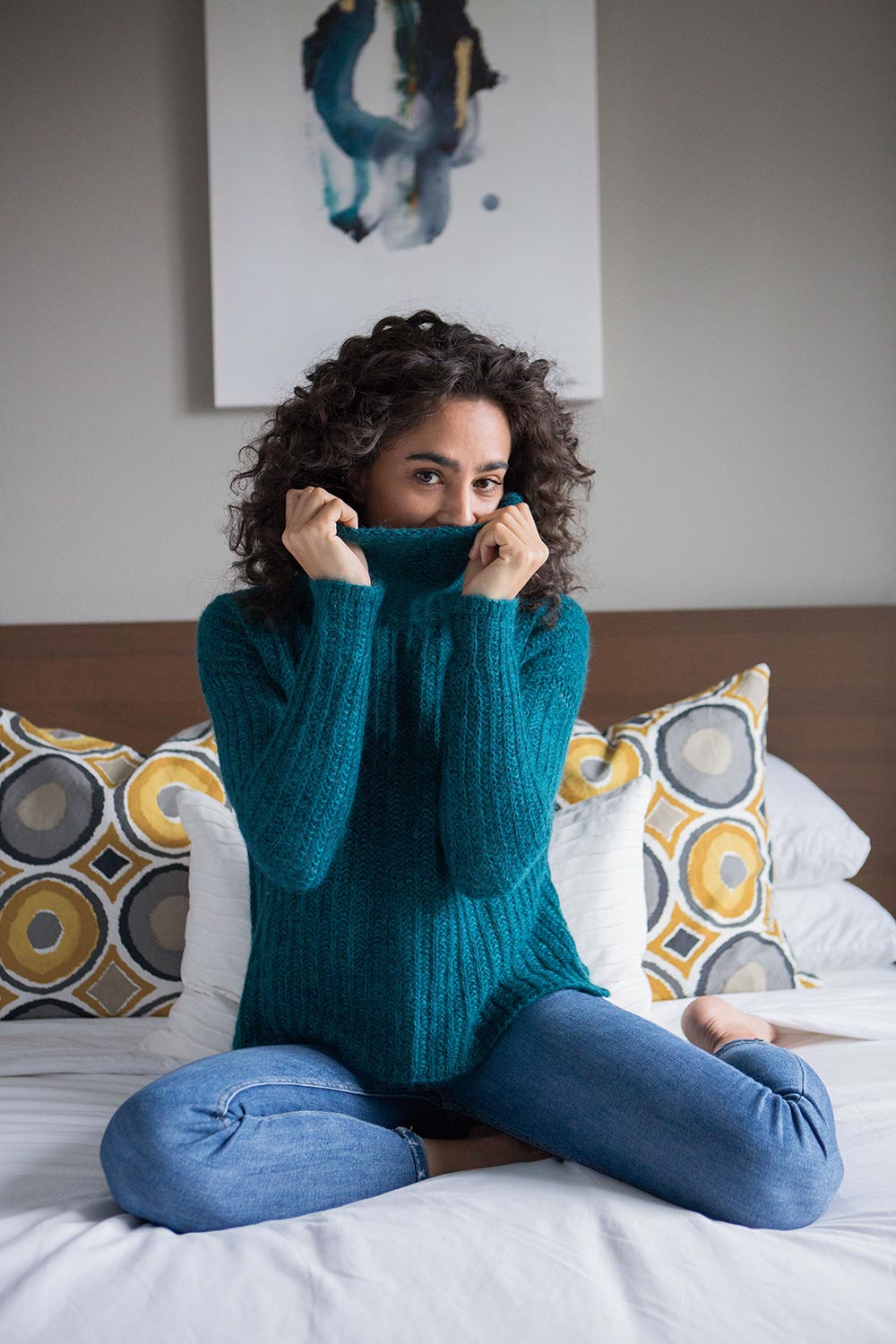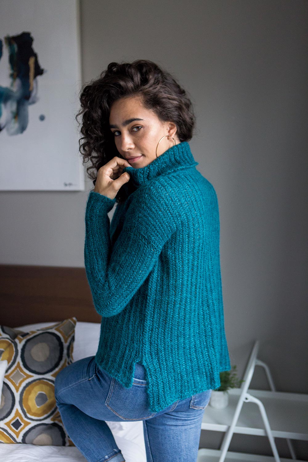 Worked bottom up and seamed, this sweater has short row shoulder shaping and a visible 3-Needle Bind Off to add design interest at the shoulders. But the real highlight is the generous cowl, which is worked in the round, bringing all that gorgeous softness up around your neck for full enjoyment.
