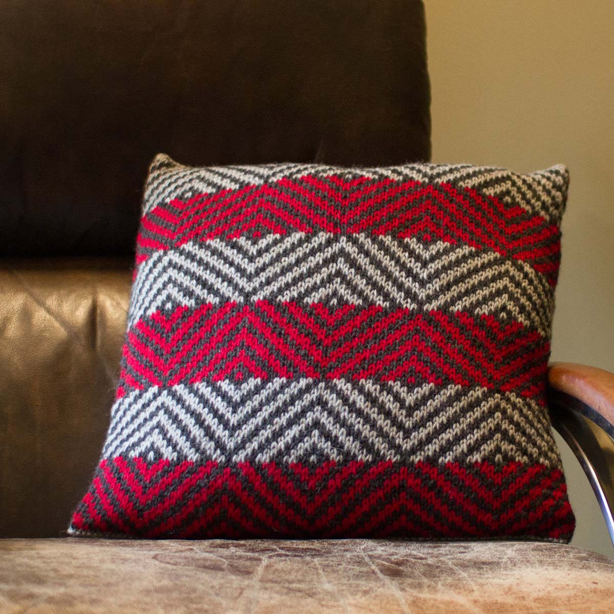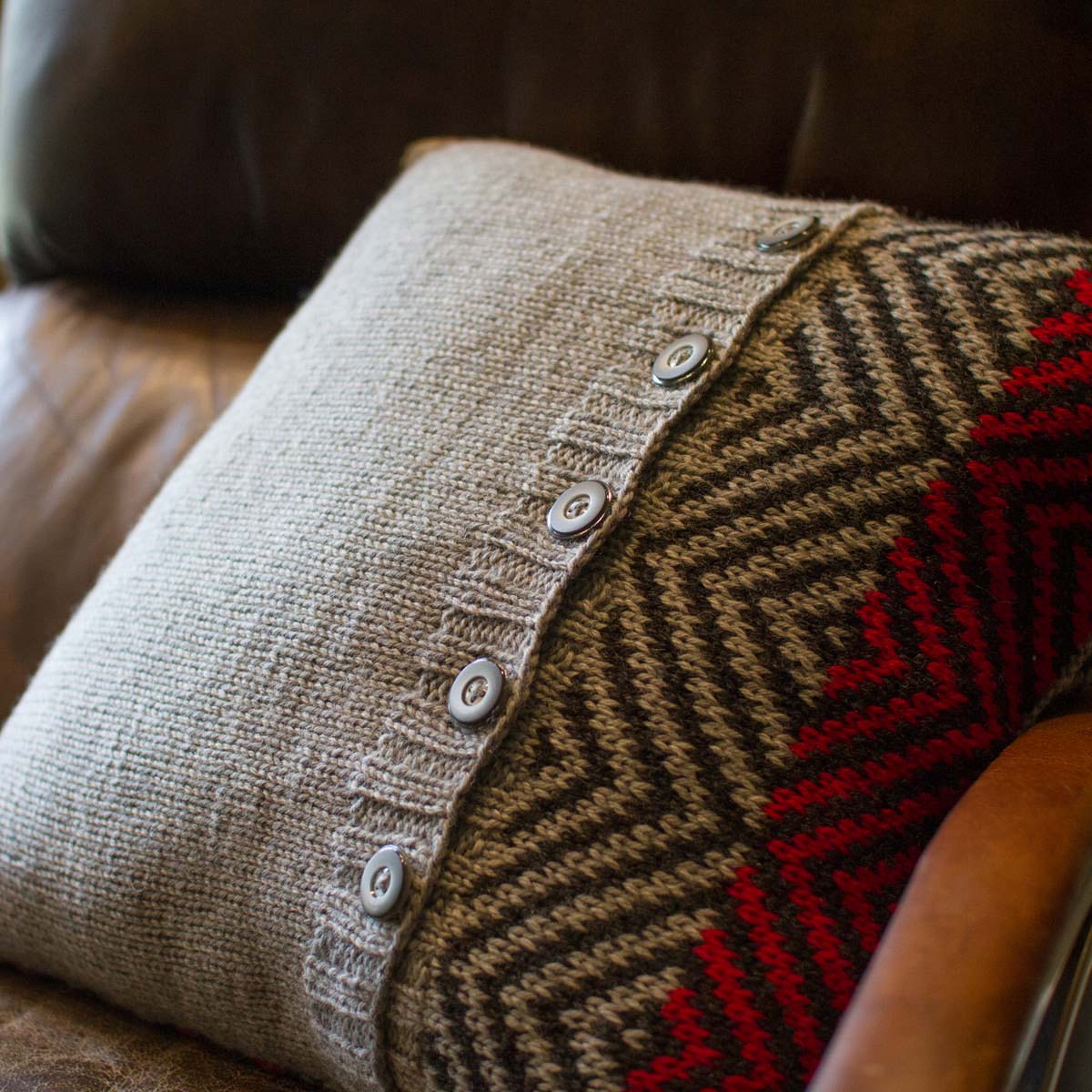 Pyramid Lake is named after the mountain that rises above it and is a favoured spot in Jasper National Park for canoeing, camping, hiking and hanging out. It’s a place where nature meets nurture. The stranded colourwork design on this pillow amplifies the ripple effect of the mountain’s reflection in the lake below. The buttoned back is just as striking with an asymmetrical effect and a cozy, cardigan feel. The Pyramid Lake Pillow is ready for all your adventures, armchair or otherwise!