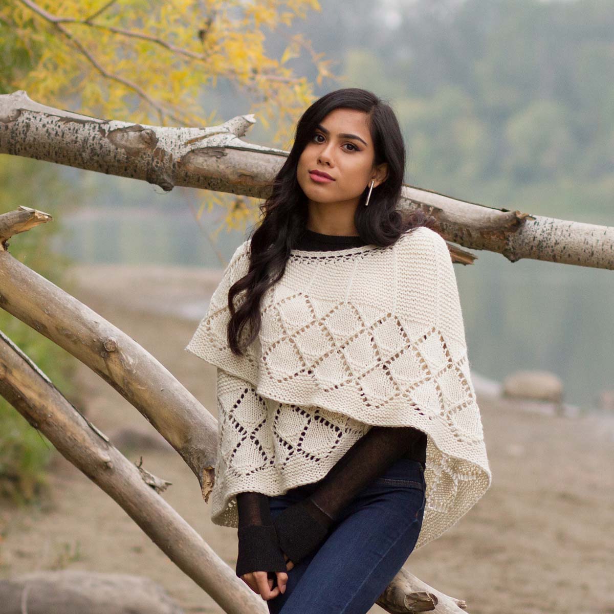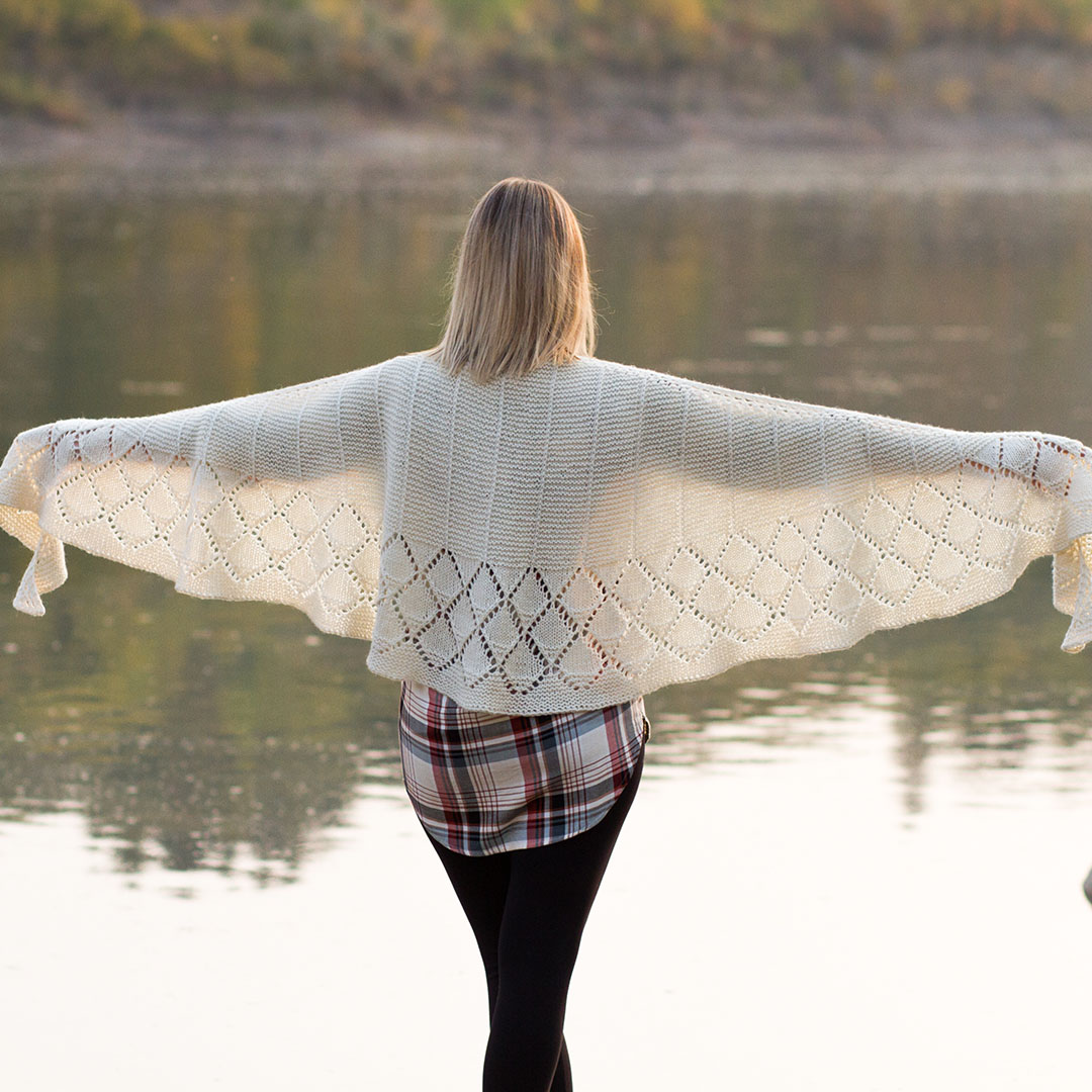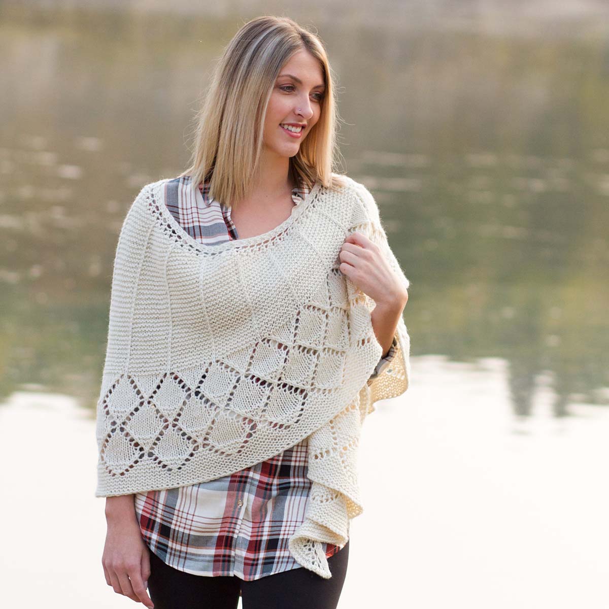 Wrap yourself in this beautiful shawl and head out to gaze at the night skies. Perfect for cool evenings in any season and made all the more scrumptious with a cup of hot cocoa in front of the fire, indoors or out. Made from cozy worsted weight yarn, this shawl can be knit up quickly: in less time than it takes the moon to go from waxing to first quarter!