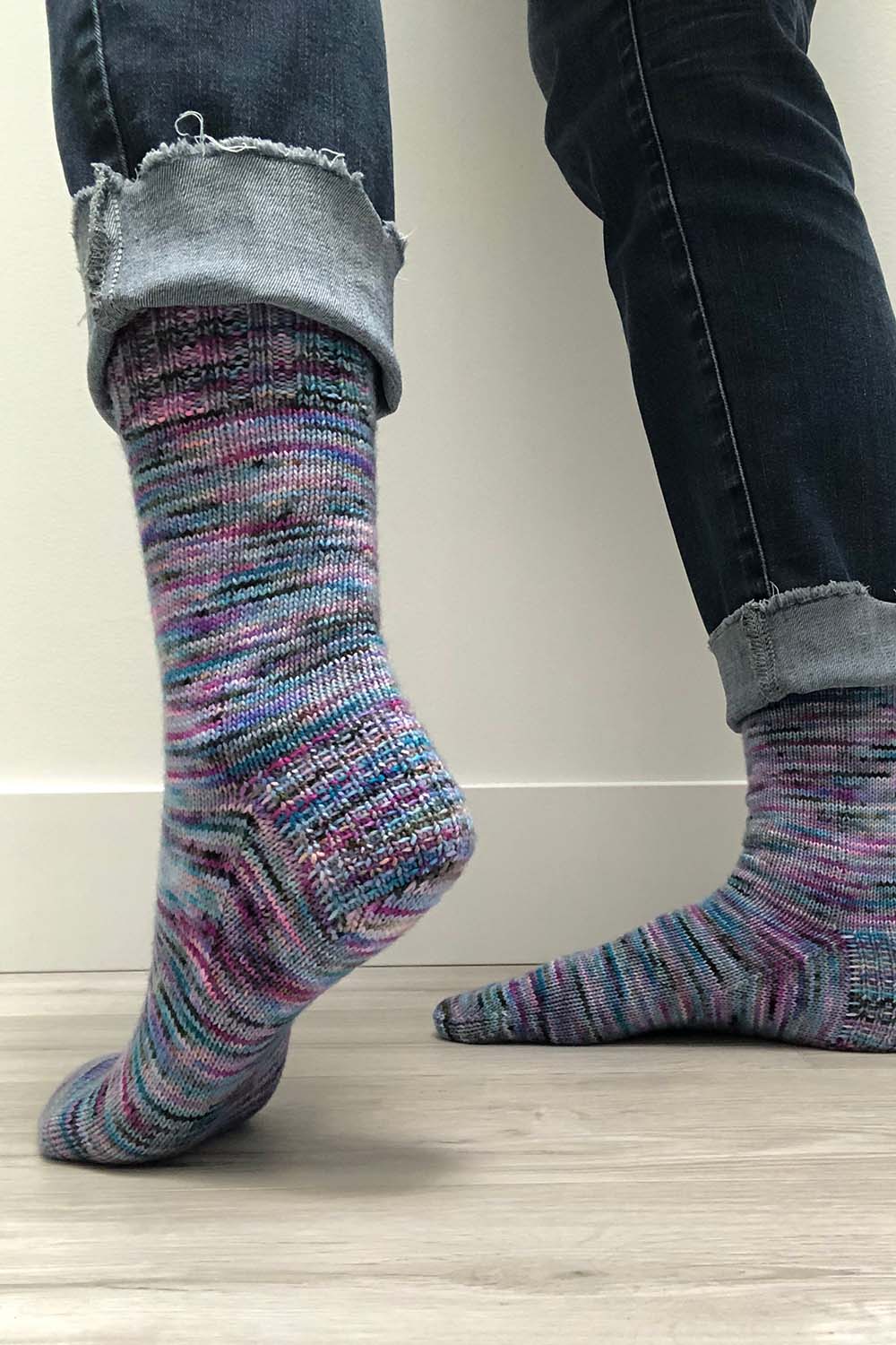 Beginner sock knitters and experts alike love the options provided in this comprehensive pattern. With guidance every step of the way, choose your path based on yarn, gauge, custom fit needs, and styling. Every pair of socks is unique. A launching pad for experimentation; integrate favourite stitch patterns or customize the size and fit for any foot. It’s all here.