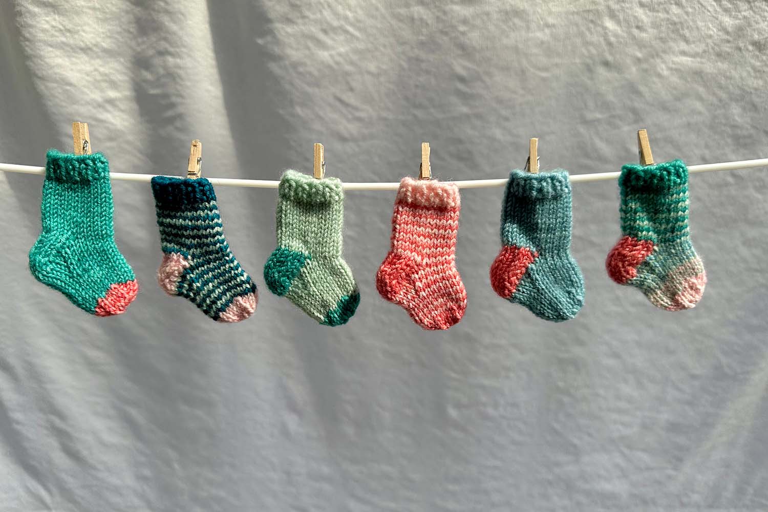 Not all socks need to be worn! Socks make great decorations. Knit a 16-st sock with fingering weight yarn for a really cute holiday ornament. Use sock yarn remnants to knit a pile of 20-st socks for a winsome garland. To make a great Christmas stocking, knit the 108-st size with chunky yarn.